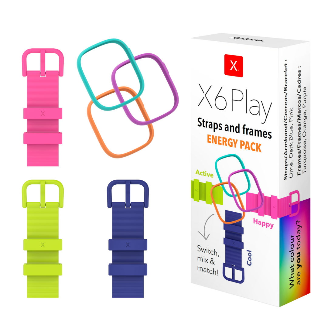 Med vores Xplora X6Play Energy Pack kan dit barn hurtigt og nemt tilpasse udseendet på sit X6Play premium smartwatch. Sættet med 3 remme, matchende remholdere og 3 beskyttende covers giver et væld af nye og flotte farvekombinationer. Byt, mix & match! – lad dine børn blande og skifte farvekombinationer på deres Xplora smartwatch, så uret bliver deres HELT eget og afspejler deres personlighed og stil. Klik på og klik af, det har aldrig været nemmere! Lad vores farvekombinationer overtage eventyret mens dine børn holder sig aktive med aktivitetsplatformen allerede i dag!